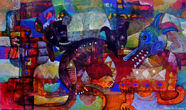«Los nahualitos», acrílico sobre tela.
