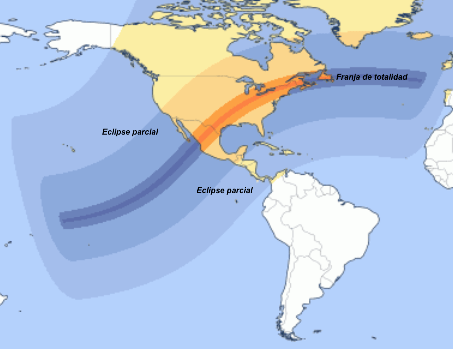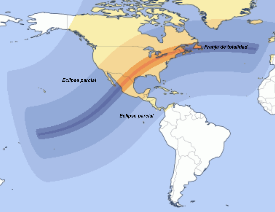 Ruta del eclipse de Sol del 8 de abril del 2024